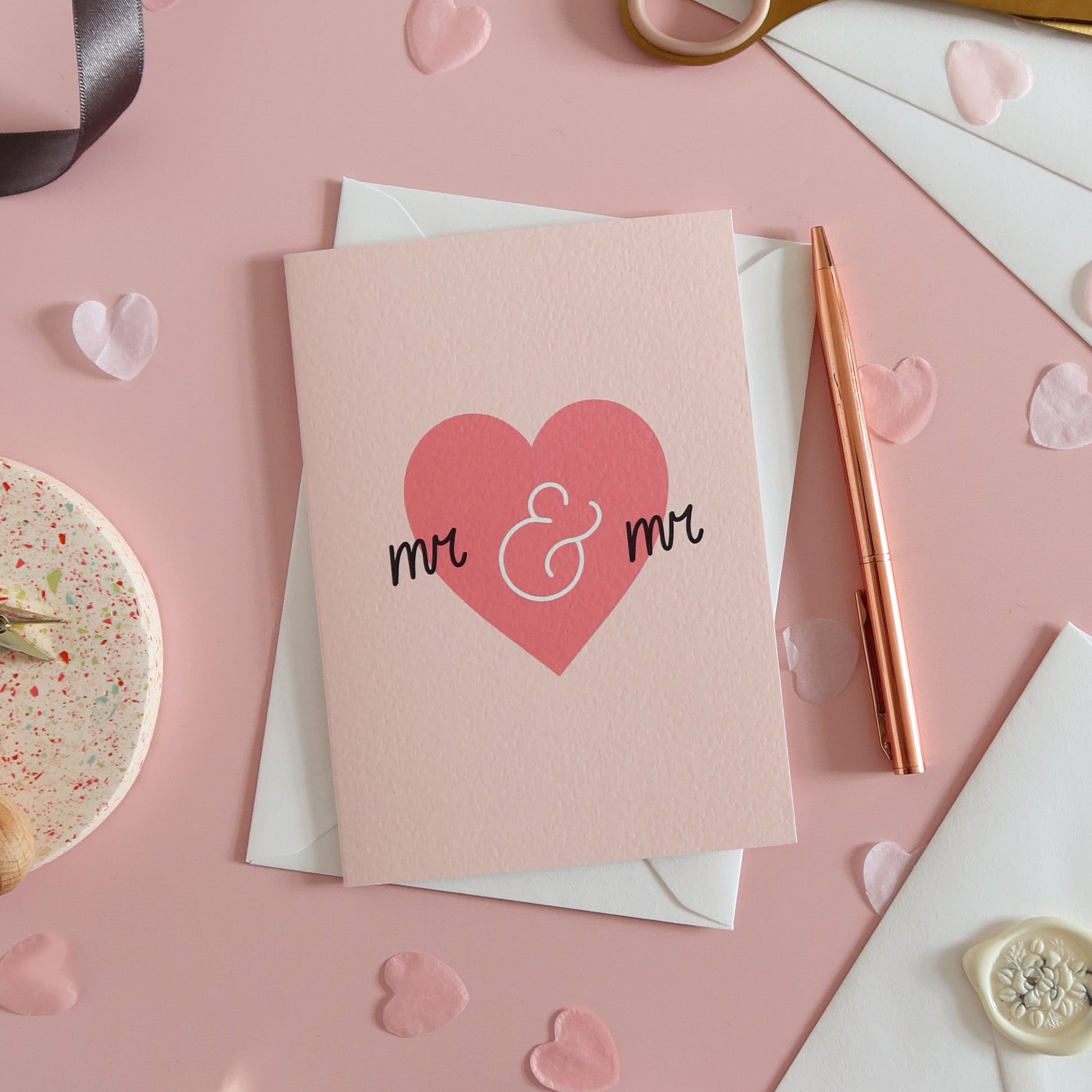 This Mr and Mr wedding card is simple, heartfelt and perfect for newlyweds. Great for pairing with a wedding gift, or sending your congratulations from afar.