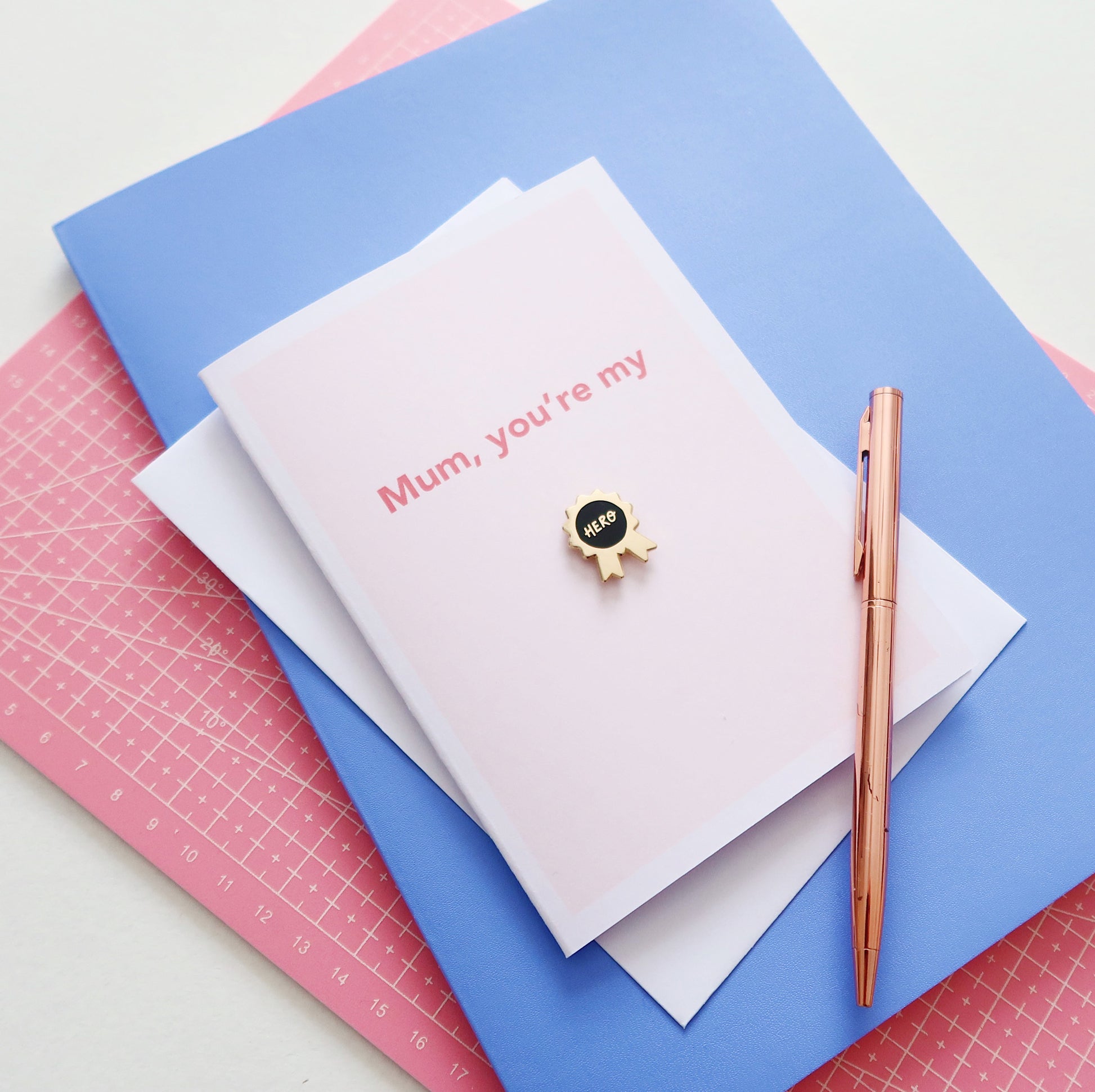 This A6 greeting card features the message “Mum, you’re my hero”, with our Hero enamel pin attached to the front, a small but meaningful reminder she can keep long after the card is opened.
